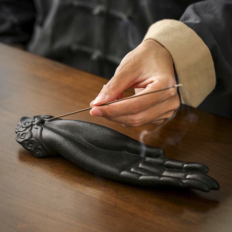 En los rituales y prácticas espirituales del budismo, la quema de incienso se utiliza comúnmente para honrar al triratna, o la triple gema del budismo, que son “el buda, el dharma y la sangha”. de hecho, proclamar la devoción a estas tres cosas es un paso importante para convertirse en un verdadero budista. Desde una perspectiva espiritual, la quema de incienso que produce un humo fragante enseña la necesidad de quemar las cualidades negativas dentro de uno mismo para revelar el ser puro interior.