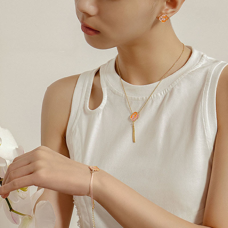 Juego de pendientes y pulsera con colgante de collar curativo con dos pájaros de cobre chapado en oro de 18 quilates con Buddha Stones
