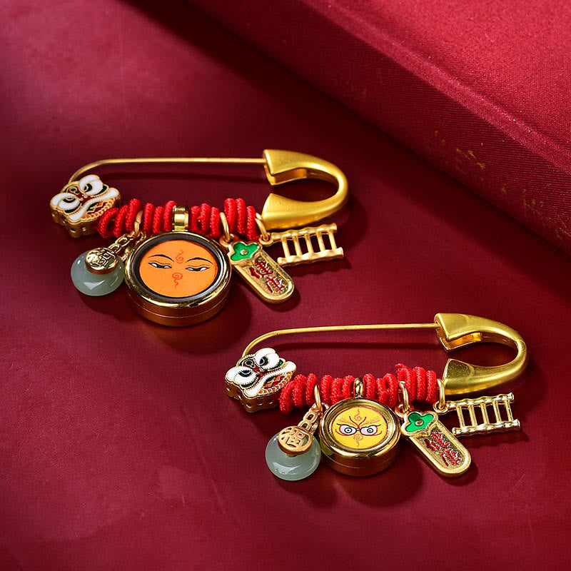 Broche de cobre con Buddha Stones de león danzante tibetano, hebilla de paz, jade, personaje Fu, seguro y saludable