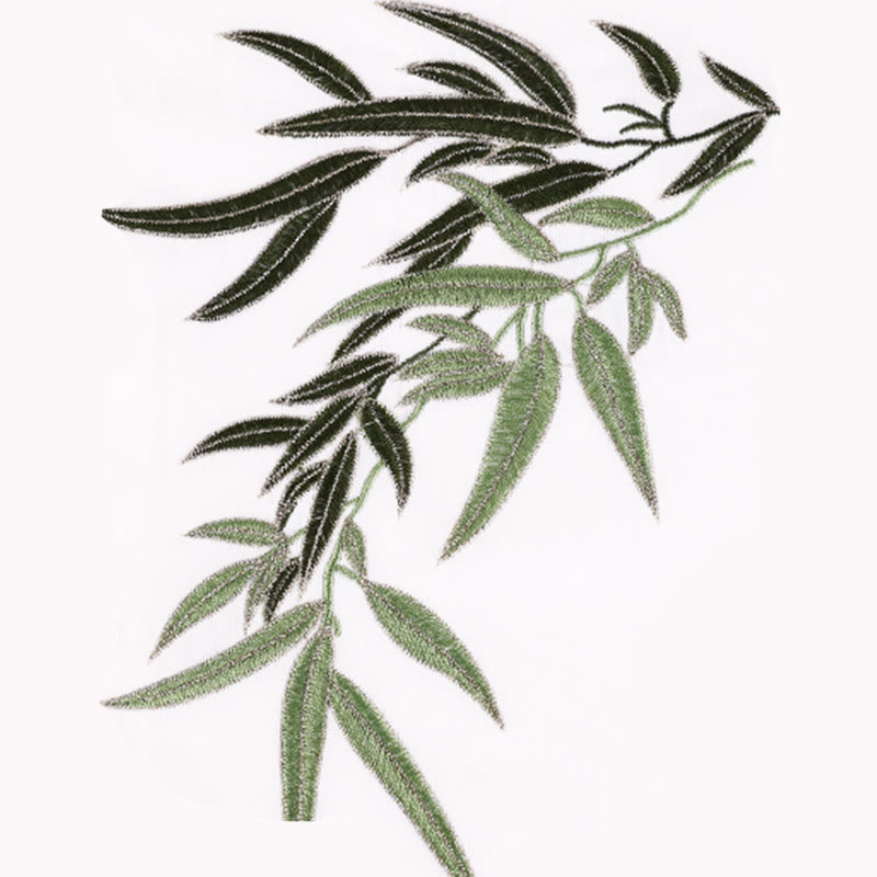 Conjunto de 2 piezas de ropa unisex de algodón con diseño de Buddha Stones bordada con hojas de bambú verde otoñal y botón de rana para meditación de tai chi, qigong y práctica zen