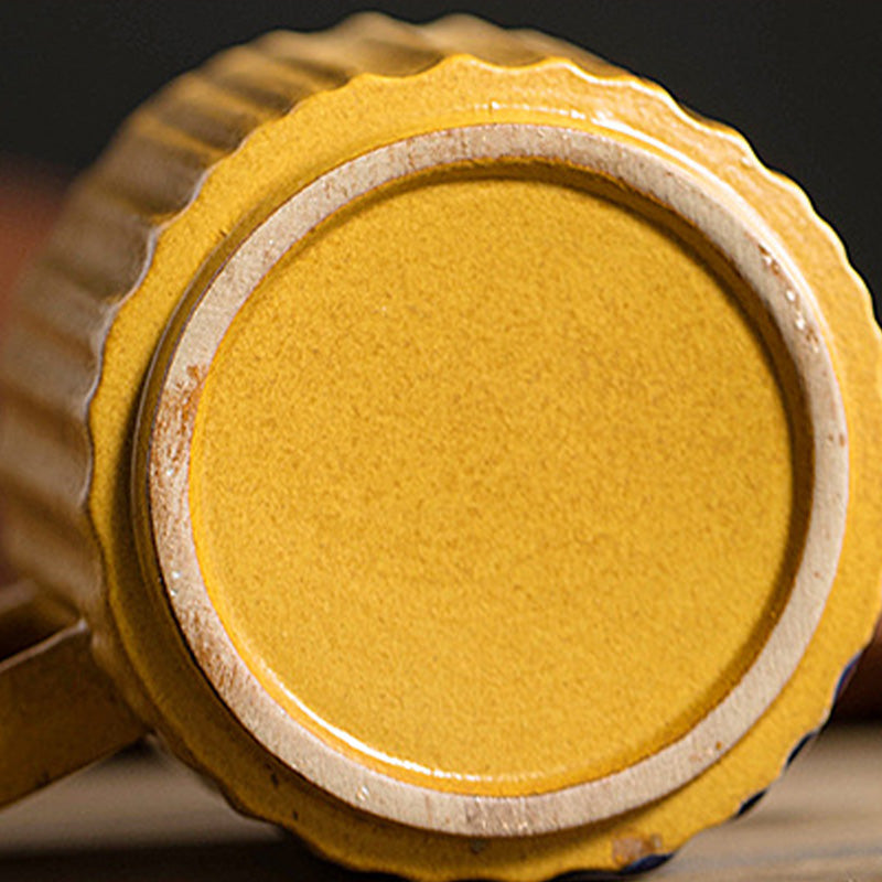 Taza de café de cerámica con cambio de horno a rayas retro con piedras de Buda, taza de café y té de cerámica rugosa con platillo de 250ml
