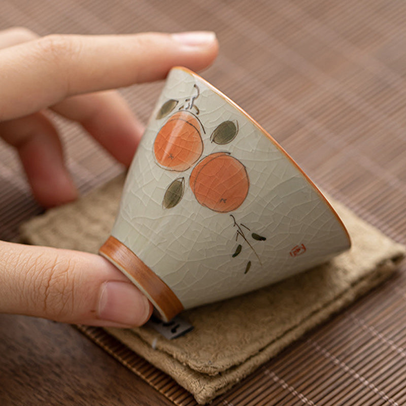 Piedras de Buda, barco caqui, pez koi, loto, taza de té de cerámica, taza de té de kung fu, 50ml