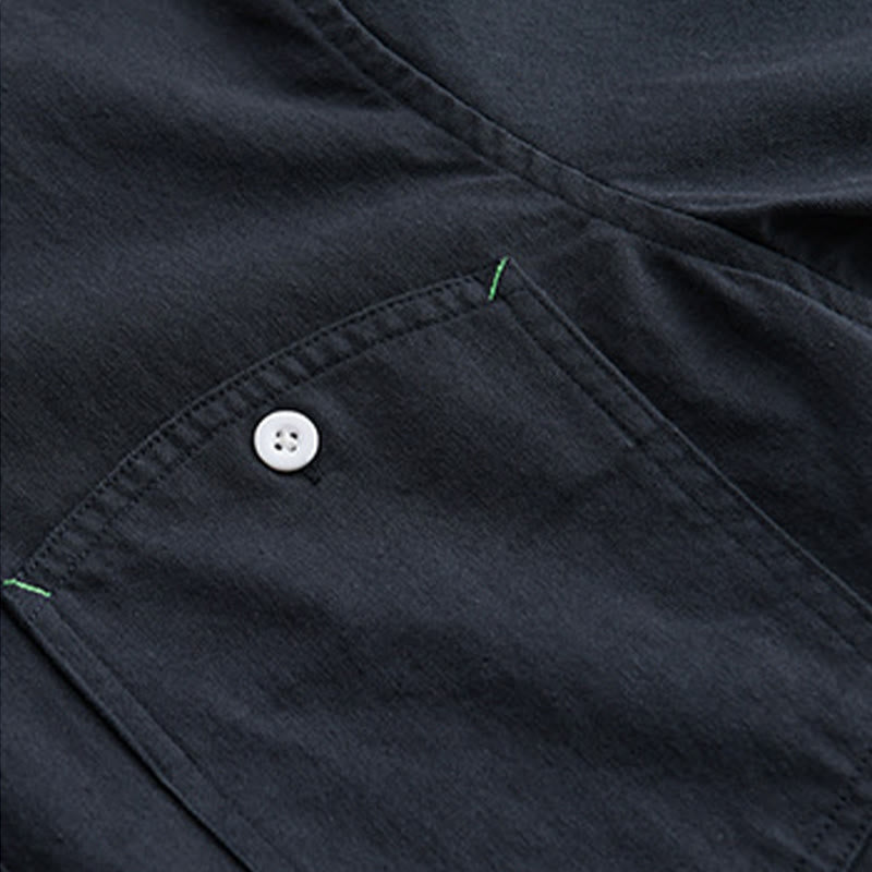 Camisa de algodón de manga larga para hombre con cuello alto, botones lisos y bolsillo decorativo con Buddha Stones