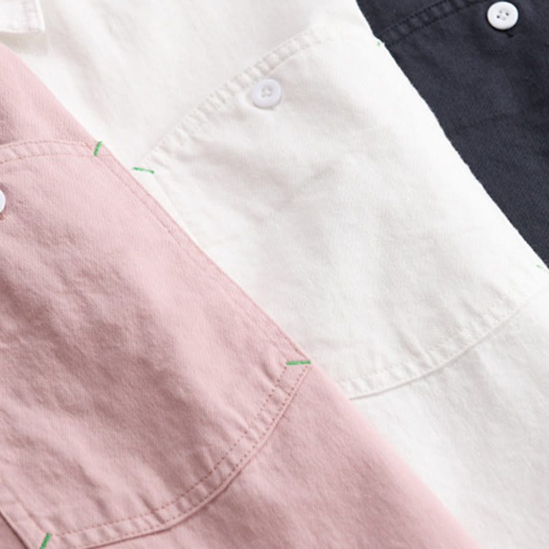 Camisa de algodón de manga larga para hombre con cuello alto, botones lisos y bolsillo decorativo con Buddha Stones - Rosa - US/UK/AU42, EU52 (3XL) - image 0