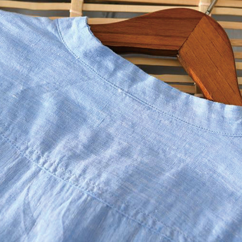 Camisa de lino con cuello alto, media manga y botones para hombre, color liso, Buddha Stones Daily