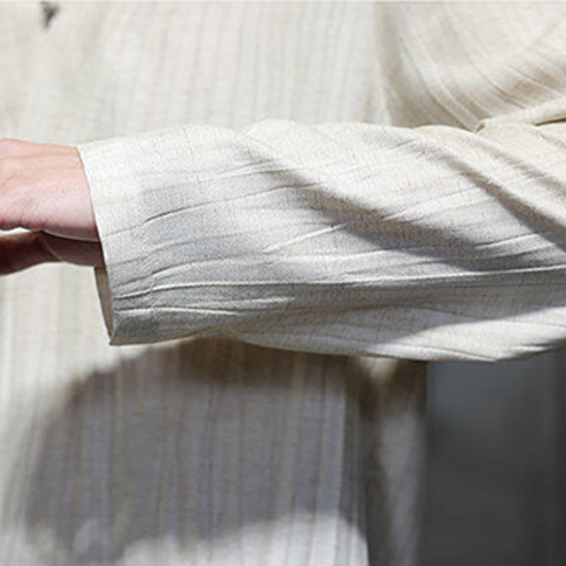 Camisa de lino para hombre de manga larga con cuello en V y estampado de Buddha Stones - image 8