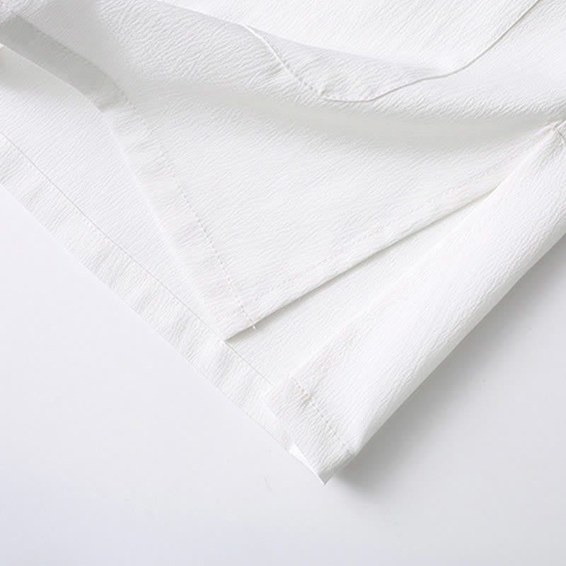 Camisa de manga corta con botones de rana y piedras de Buddha Stones Tang, pantalones de pierna ancha, traje para hombre - Blanco - US/UK/AU44, EU54 (4XL) - image 0