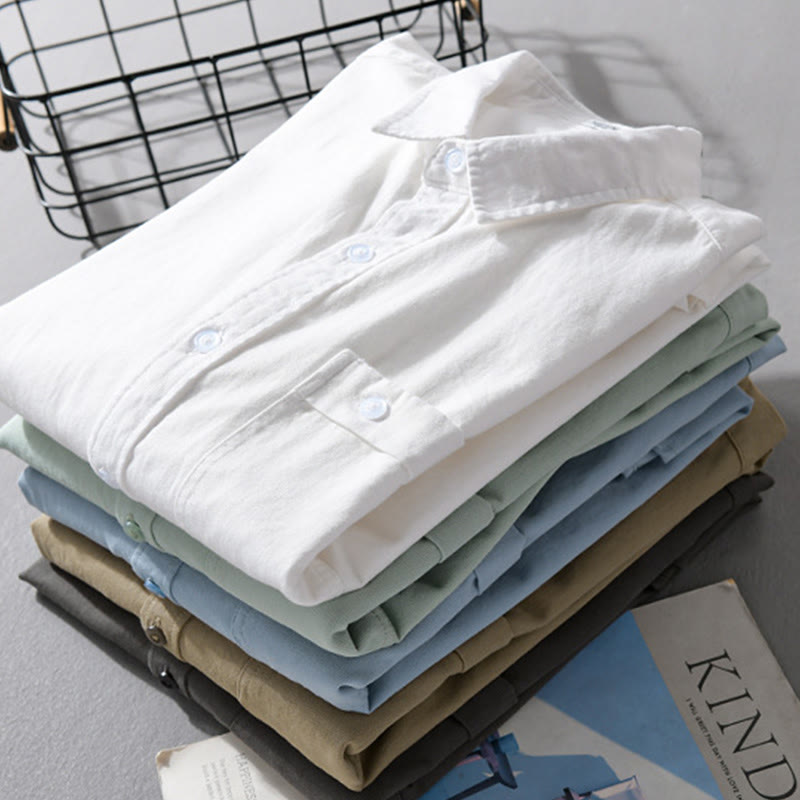 Camisa informal de algodón de manga larga con cuello alto y bolsillos decorativos para hombre con estampado de Buddha Stones