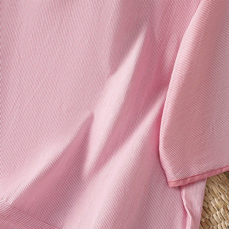 Camisa de algodón de manga corta para mujer con diseño de rayas y cuello redondo de Buddha Stones - Rosa claro - US8-10,UK/AU12-14,EU40-42 (2XL) - image 6