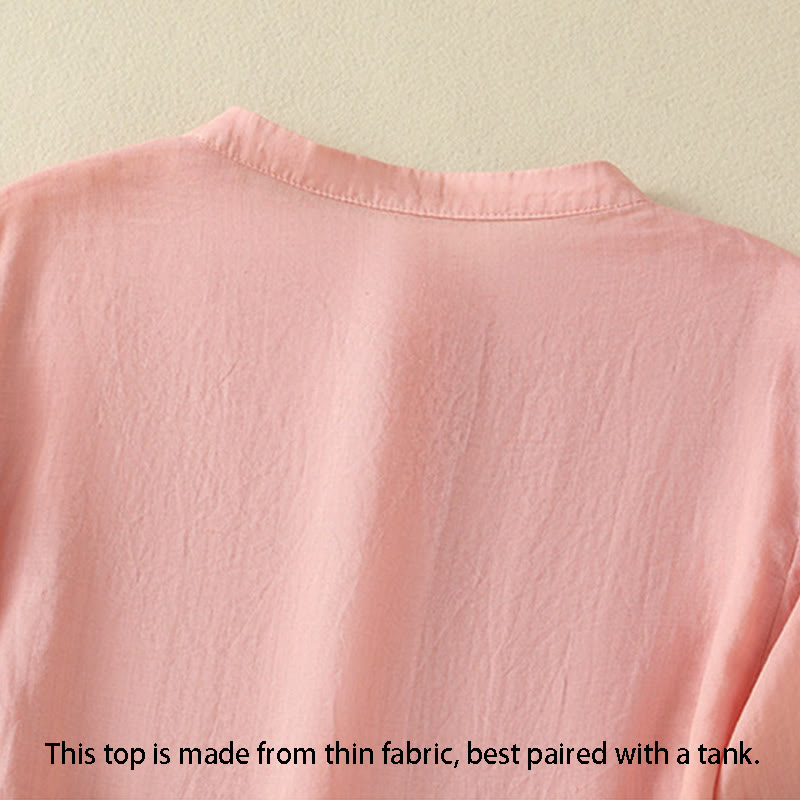 - PD: Esta blusa está hecha de tela fina y queda mejor con una camiseta sin mangas.