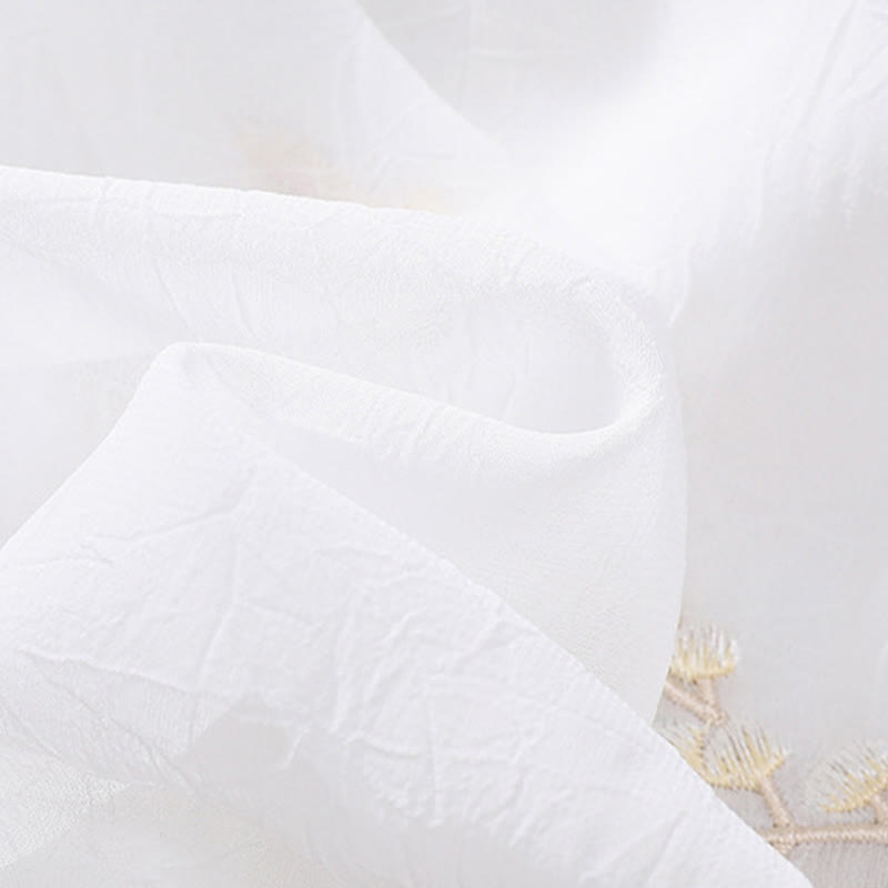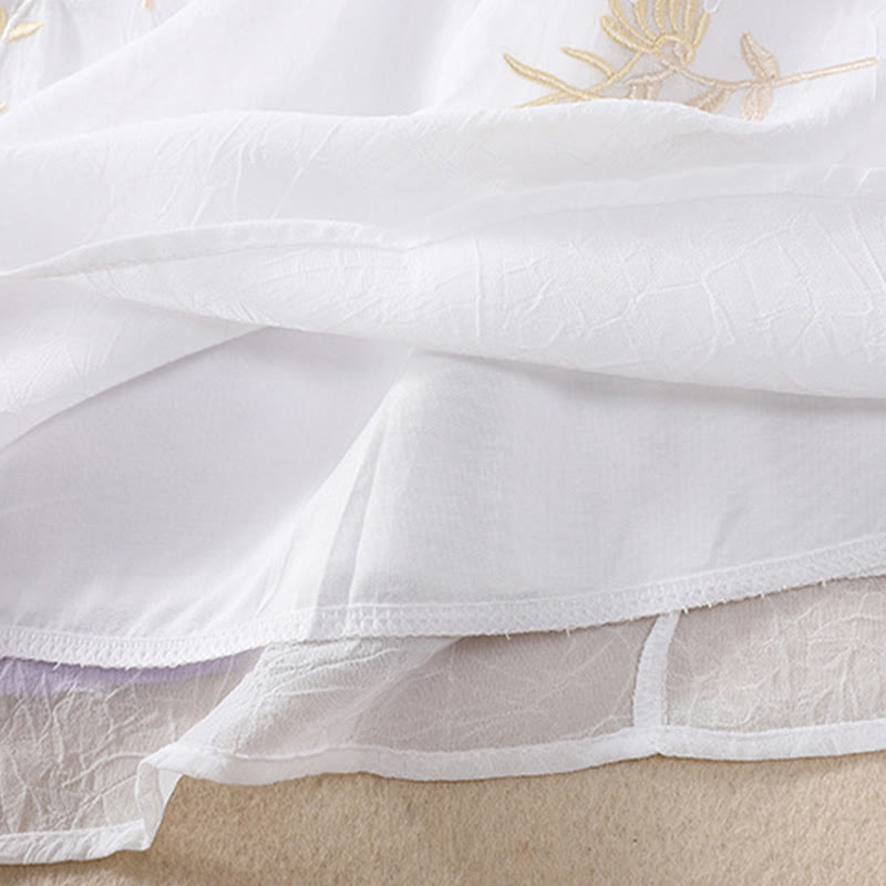 Camisa de mujer con cuello alto, media manga, botones de rana, diseño de Buddha Stones , bordado de plantas y flores