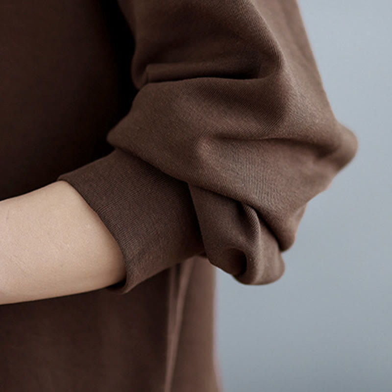 Sudadera de algodón para mujer con diseño asimétrico de color sólido y cuello redondo con estampado de Buddha Stones. - Marrón silla de montar - US12, UK/AU16, EU44 (3XL) - image 0