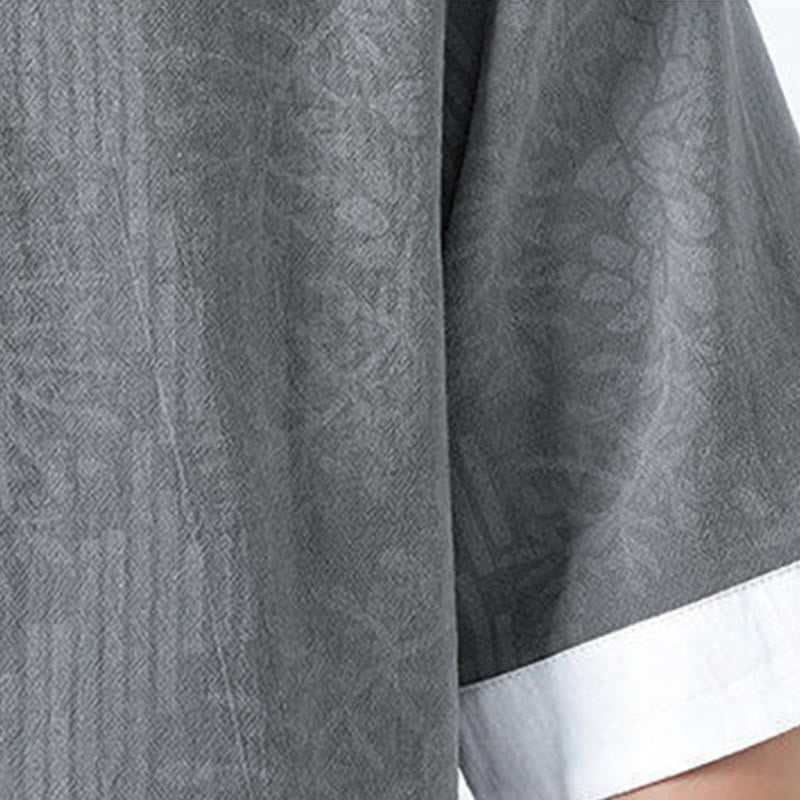 Buddha Stones Camisa de algodón de media manga con botones de rana para hombre con estampado de flores de verano y hierba - Gris claro - US/UK/AU46, EU56 (5XL) - image 3