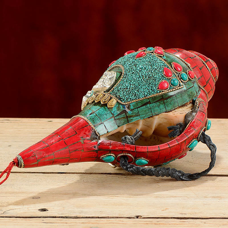 El shankha es uno de los ocho símbolos auspiciosos del budismo y representa el sonido omnipresente del budismo. es un símbolo auspicioso que se cree que da fama, longevidad, prosperidad y buena suerte al mismo tiempo que erradica la negatividad y purifica el entorno. la caracola blanca que gira hacia la derecha (tibetano: དུང་གྱས་འཁྱིལ, wylie: dung gyas 'khyil), representa el sonido elegante, profundo, melodioso, interpenetrante y omnipresente del budismo. El sonido del shankha simboliza el sonido sagrado om.